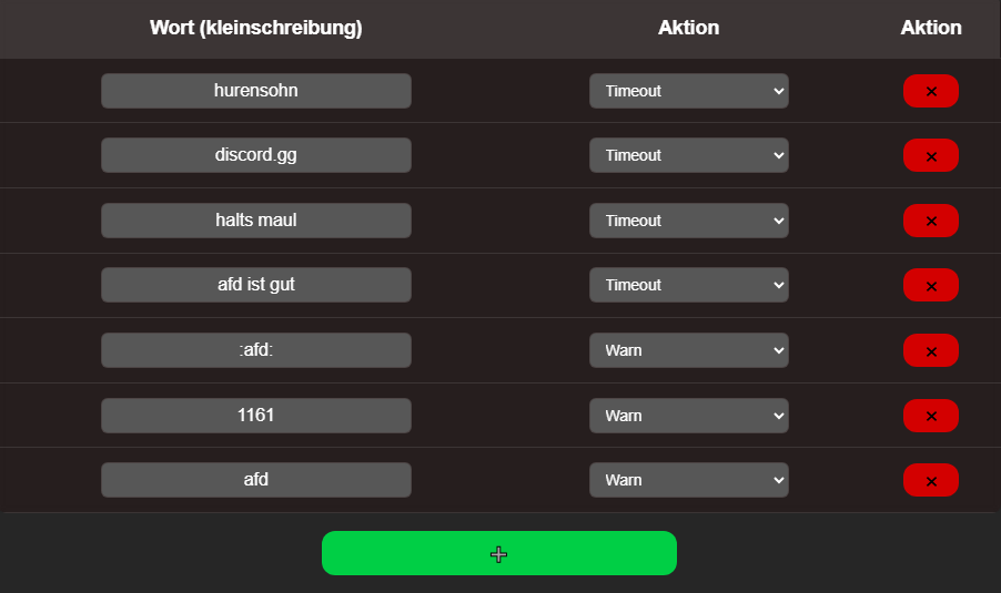 Einige Wörte kannst du konfigurieren, welche auf dem gesamten Server verboten sind und bestraft werden