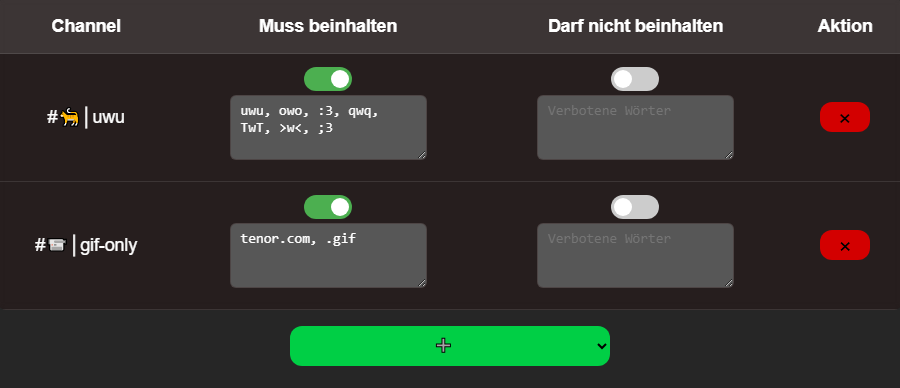 Stelle ein, dass in bestimmten Channeln eine Nachricht ein bestimmtes Wort beinhalten muss oder nicht beinhalten darf