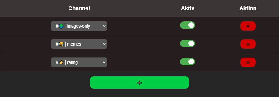 Stelle Channel für Bewertungen ein und bewerte Nachrichten in dem Kanal mit 1 bis 5 Sternen